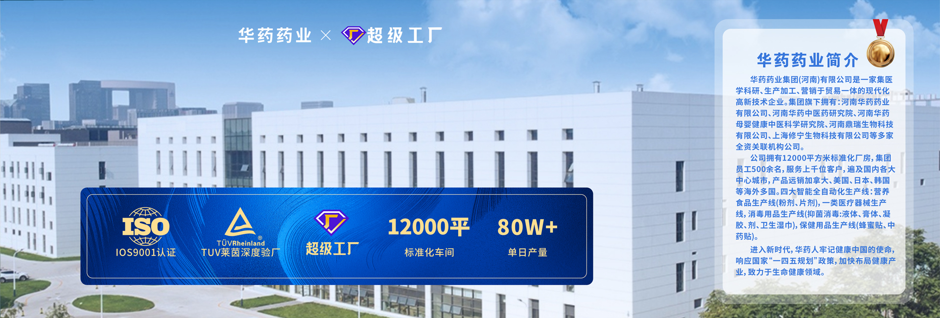 河南華藥集團是一家集研發(fā)、生產(chǎn)、加工、銷售于一體的現(xiàn)代化高新技術企業(yè)。集團旗下?lián)碛泻幽先A藥藥業(yè)有限公司、上海修寧生物科技有限公司、河南鼎瑞生物科技有限公司三家全資子公司。華藥集團先后創(chuàng)立了“華藥漢本”、“華藥帝龍”、“修寧康”、“仁和泰康”、“信爾康”、“豫醫(yī)古方”、“汐博士”、“HYHB”、“華育慧寶”等多個知名品牌。生產(chǎn)線涵蓋粉劑、片劑、液體、蜂蜜貼、膏藥貼劑等五大生產(chǎn)線。現(xiàn)有產(chǎn)品100余..···